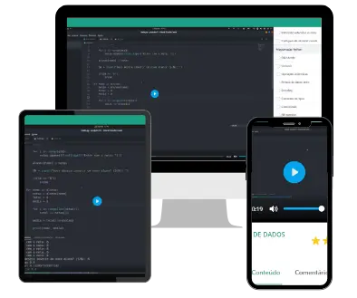 Você terá acesso ao nosso ambiente virtual do Guia Python. Uma plataforma online para você acessar e assistir as aulas na hora que quiser e na ordem que quiser, por qualquer dispositivo, seja computador ou celular.